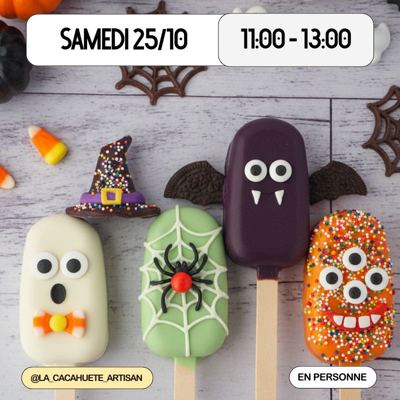 Vous façonnerez, tremperez et décorerez de riches sucettes glacées au brownie en formes emblématiques d’Halloween : momies, monstres, fantômes et citrouilles — à l’aide de chocolat coloré, de paillettes sucrées et d’yeux en bonbon. Ensuite, vous mixerez un smoothie savoureux avec des fruits de saison pour une boisson d’Halloween aussi saine que délicieuse.